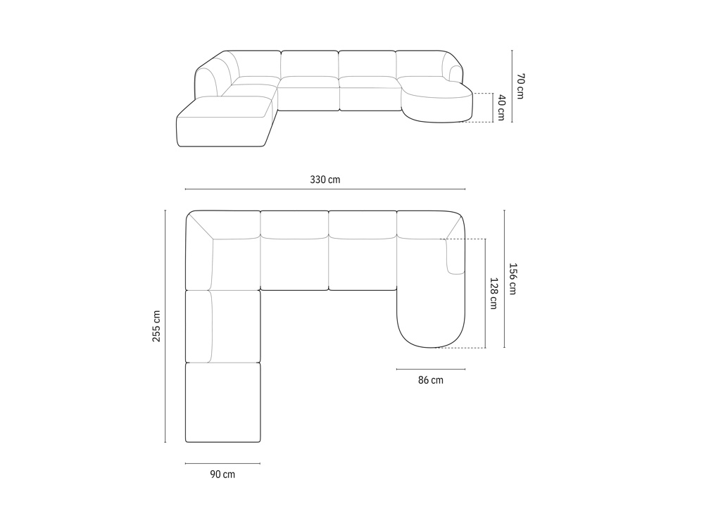Talia - canapé d'angle panoramique 7 places